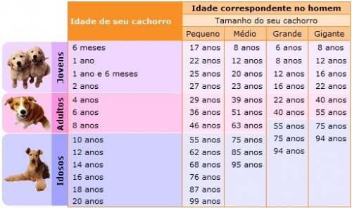 O tempo de vida dos animais varia muito de espécie para espécie; mesmo entre os mamíferos as diferenças são bastante significativas. A imagem traz uma relação aproximada entre a idade do cachorro e a idade do homem.